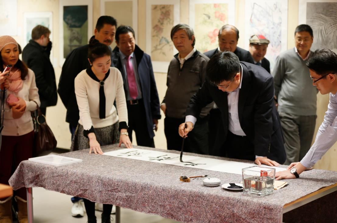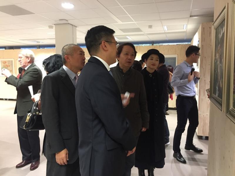 陳日彪公參在致辭中說(shuō),“很榮幸也很高興和大家一起成為現(xiàn)代藝術(shù)家作品歐洲巡展的第一批觀眾。海牙中國(guó)文化中心是中國(guó)文化海外傳播與交流的重要窗口,承擔(dān)著開(kāi)展文化活動(dòng)、教學(xué)培訓(xùn)、思想交流和信息服務(wù)這四大職能。也是加深中荷兩國(guó)人民互相理解和信任的重要平臺(tái);希望經(jīng)常能與中、荷兩國(guó)藝術(shù)家們?cè)诤Q乐袊?guó)文化中心相聚,一同品味中國(guó)文化的美好,推動(dòng)中荷文化交流互鑒。”
