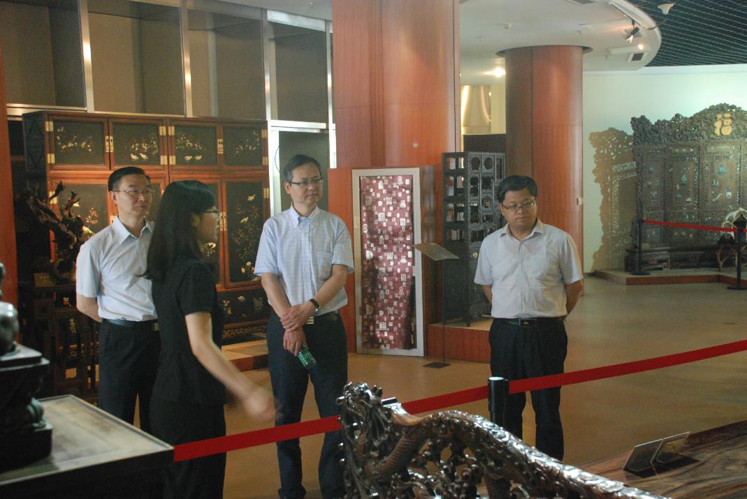 朱濤書記對愛濤文化藝術(shù)中心的館藏精品大為贊嘆,頻頻駐足觀看。