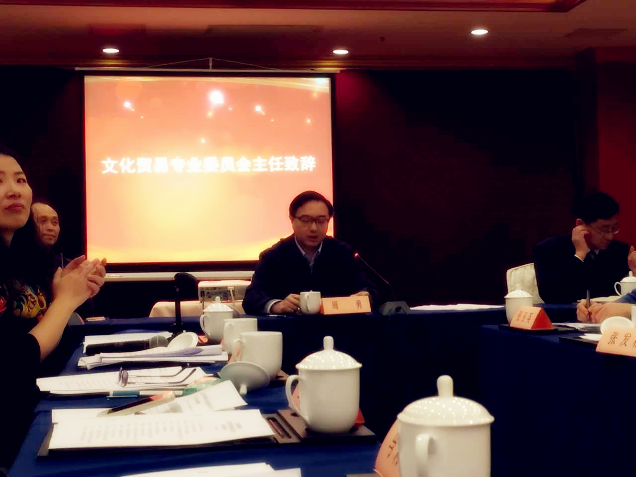 大會(huì)審議通過了《江蘇省國際商會(huì)文化貿(mào)易專業(yè)委員會(huì)工作規(guī)則》,選舉產(chǎn)生了文貿(mào)委主任、副主任及秘書長。江蘇省蘇豪控股集團(tuán)總裁周勇當(dāng)選江蘇省國際商會(huì)文化貿(mào)易專業(yè)委員會(huì)主任。愛濤文化集團(tuán)董事長張發(fā)松被選舉為常務(wù)副主任。