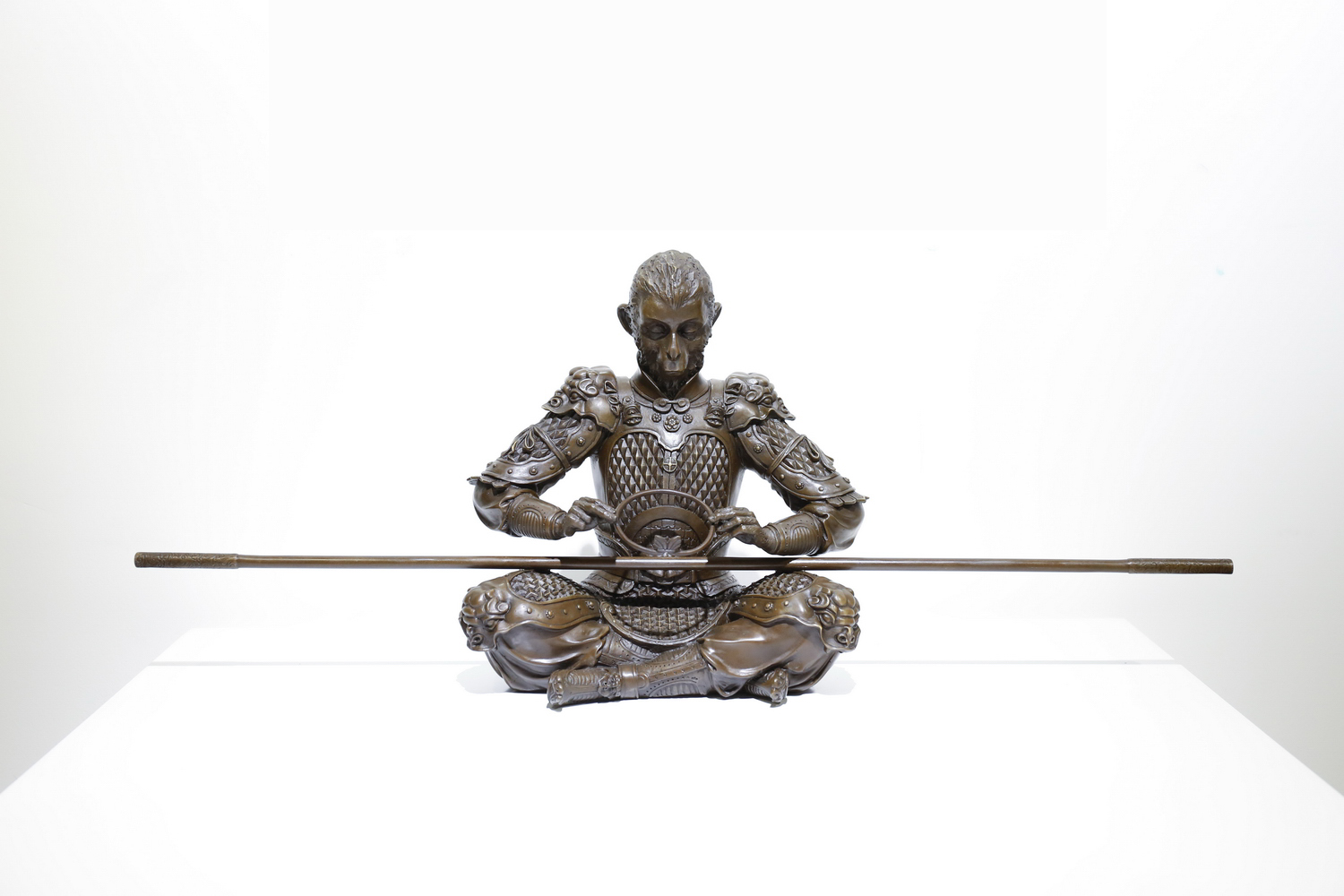 斗戰(zhàn)勝佛重在渲染禪悟思想。創(chuàng)作靈感來源于張墨一老師原畫和影片大話西游里的經(jīng)典片段,并進(jìn)行了藝術(shù)融合和工藝提煉。制作上把大圣定格在了手持金箍圈欲戴又欲止的心理矛盾中。作品造型舍動(dòng)求靜,然“靜”中更傳遞著取舍間的大悟。