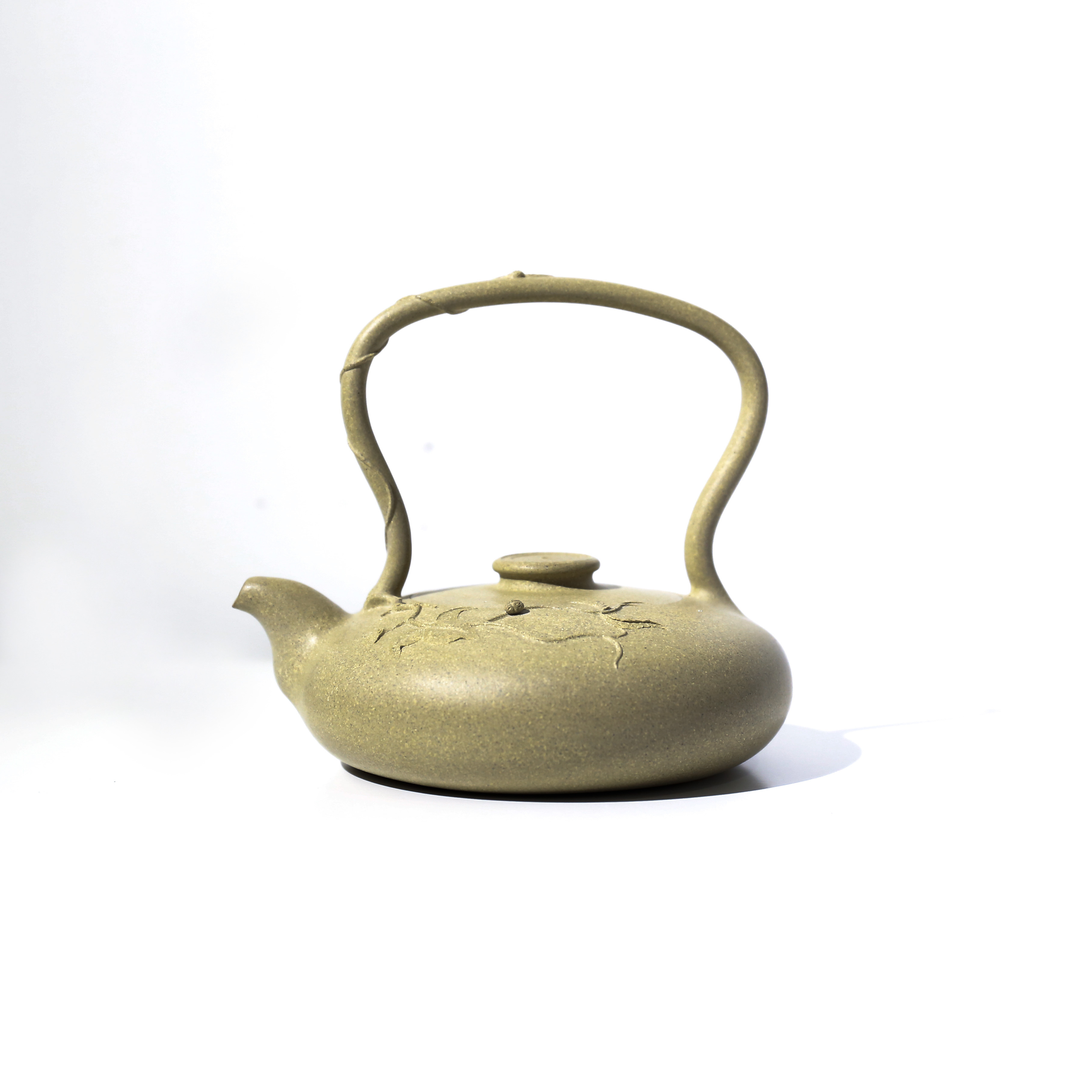 《新姿》一壺設(shè)計(jì)于丁酉早春,設(shè)計(jì)的靈感來源于一盆案頭水仙。“幽姿冉冉弄晴煙,玉蕤暈碧曉肌鮮。”作品精選黃龍山原礦紅降坡泥料,泥料色澤紅潤,油脂極好。制作時(shí)充分考慮三維一體的空間理念,作品的每一個(gè)視角都力求把握線條的美感與整體的協(xié)調(diào)性。壺身部分的線條則緩沖流暢,于明暗轉(zhuǎn)折、虛實(shí)對比中凸顯出此壺的溫潤、凝重、古雅之風(fēng)。