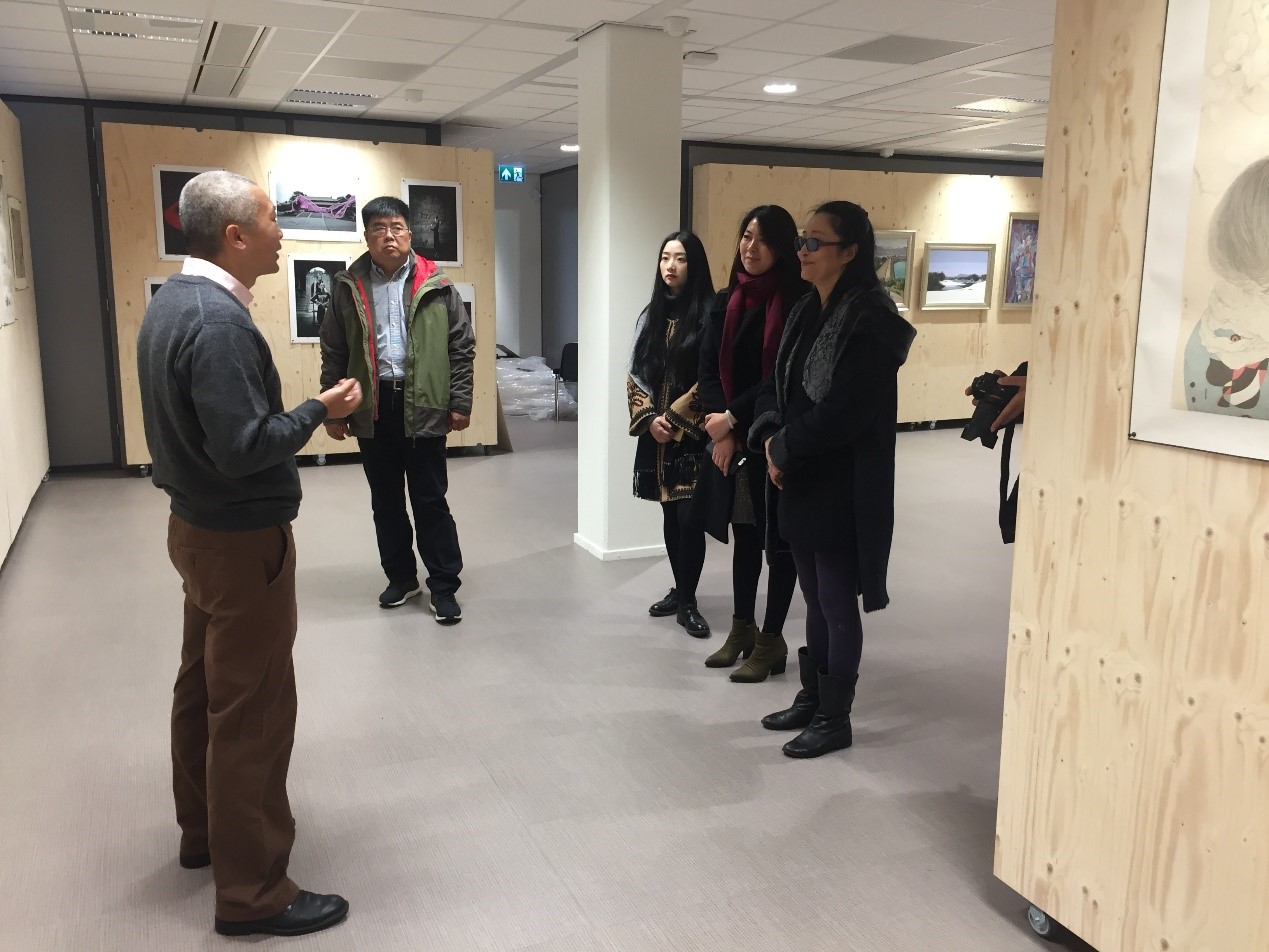 為迎接即將啟動(dòng)的開幕式活動(dòng),團(tuán)隊(duì)的藝術(shù)家們一大清早就來到海牙中國(guó)文化中心,現(xiàn)場(chǎng)指導(dǎo)作品布展工作,并就海牙中國(guó)文化中心在未來策展規(guī)劃和開展多種模式聯(lián)合運(yùn)作等方面工作與黃宏昌副主任進(jìn)行了交流,為今后文化藝術(shù)交流工作提出了許多寶貴意見和建議。