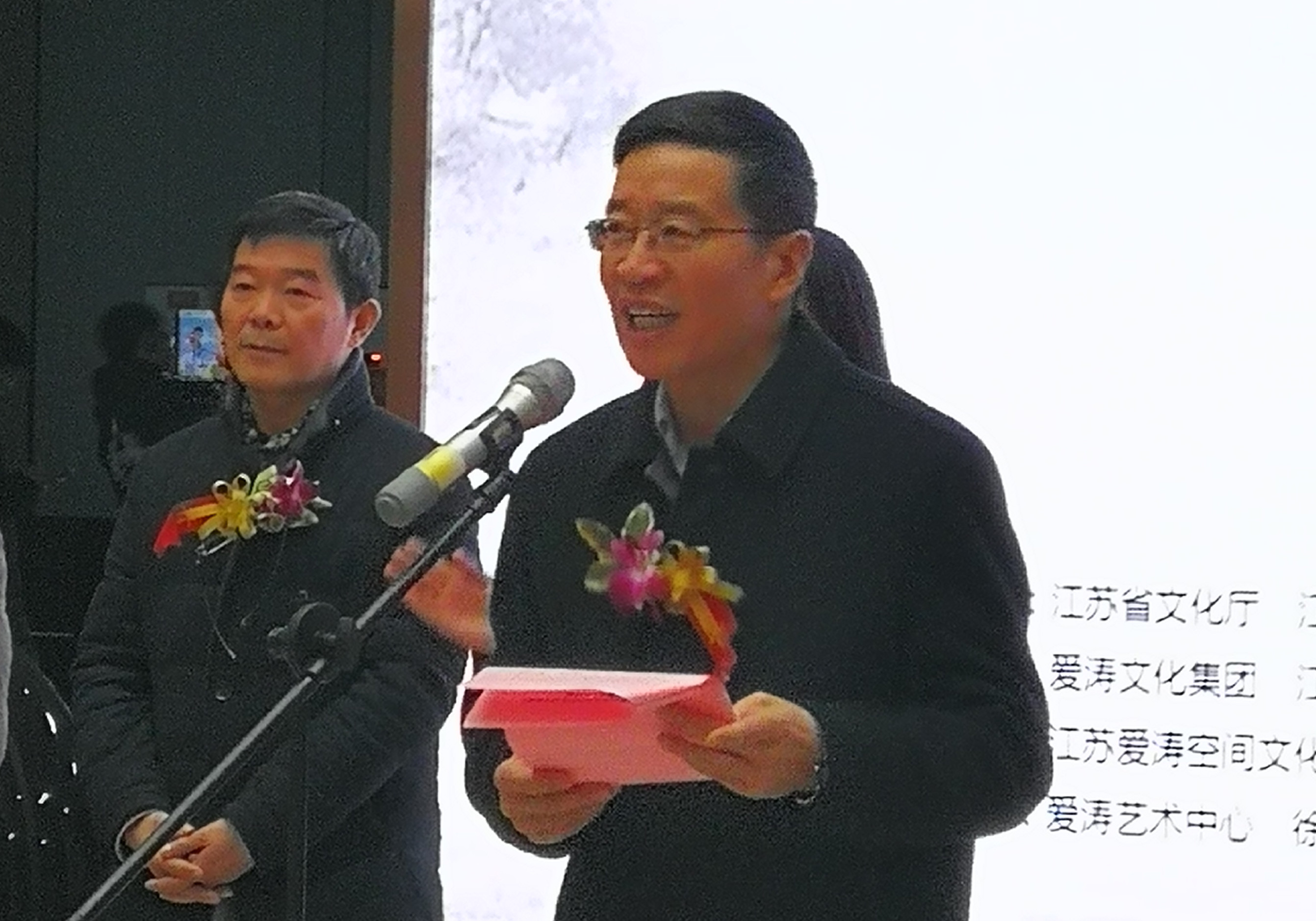 開幕式上,原江蘇省文化廳巡視員、現(xiàn)江蘇藝術(shù)基金會(huì)副理事長、全國美協(xié)中國畫藝委會(huì)副主任、國家畫院中國畫院副院長高云、江蘇省蘇豪控股集團(tuán)黨委委員、副總裁唐進(jìn)致辭,并為展覽揭幕。江蘇省文化廳江蘇藝術(shù)基金辦公室主任濮琦、徐州市文化廣電新聞出版局局長高成富、愛濤文化集團(tuán)總經(jīng)理陳云梅、江蘇省美術(shù)館副館長金田、徐州市書畫院院長、徐州美術(shù)家協(xié)會(huì)主席高洪嘯、江蘇師范大學(xué)美術(shù)學(xué)院常務(wù)副院長惠劍以及省、市書畫家出席開幕儀式。